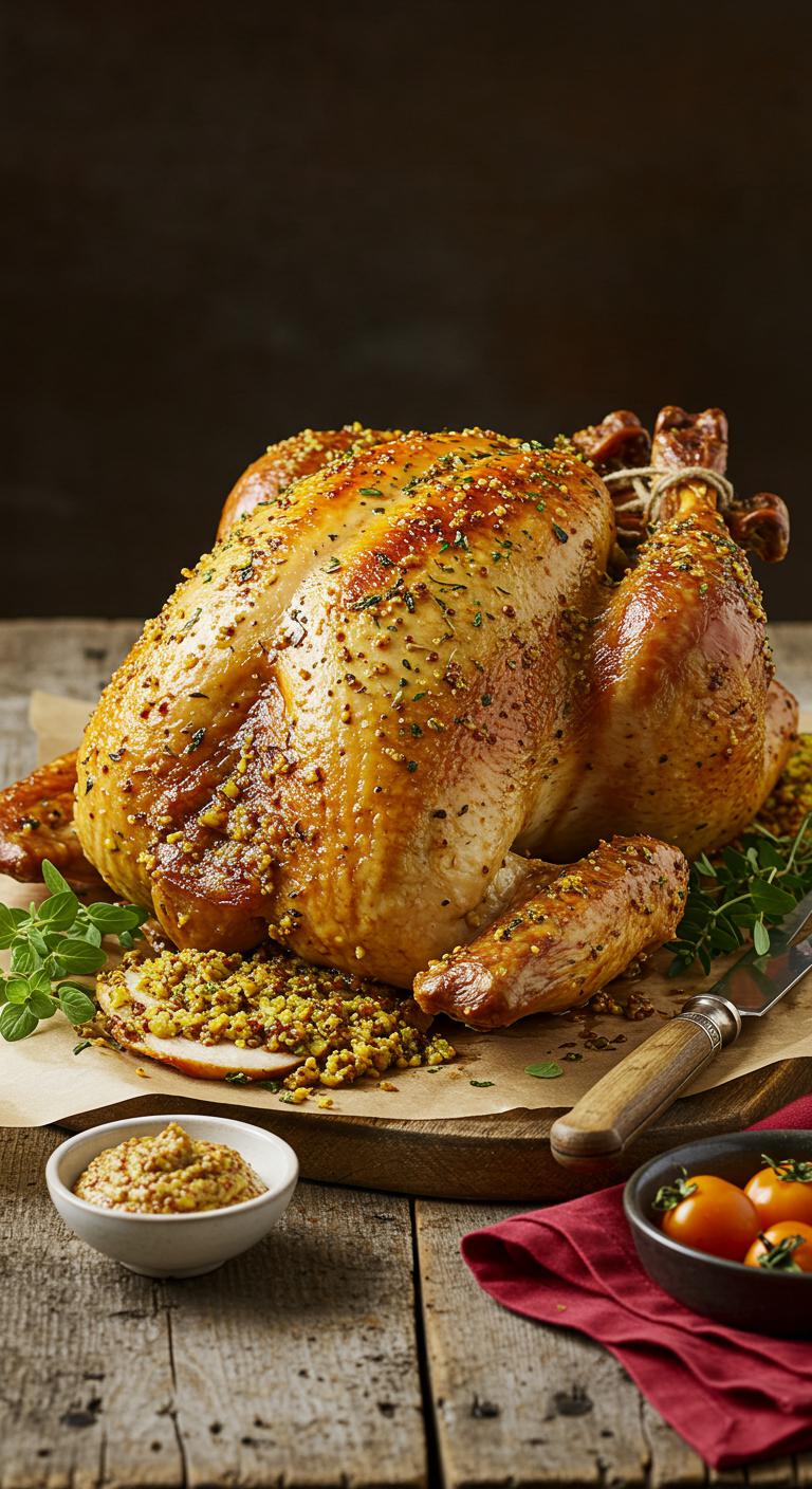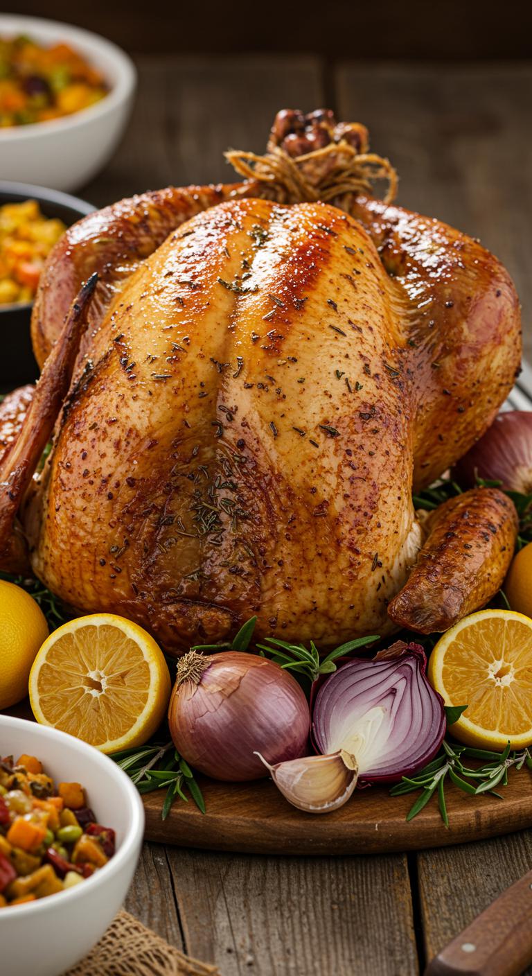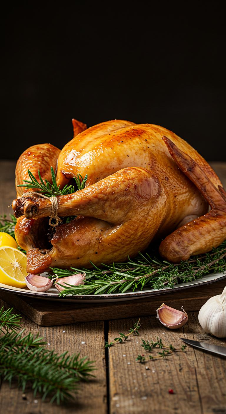 A bright, aromatic herb-roasted turkey with lemon and garlic — crispy skin, juicy meat, and a fragrant citrus-herb punch.