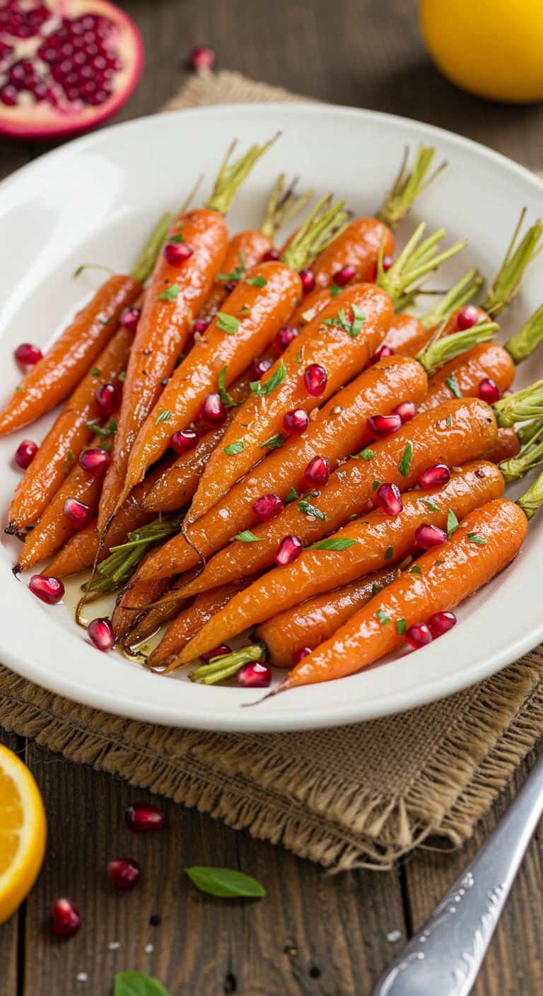 Bright, glossy carrots caramelized with citrus and studded with pomegranate for a sweet-tart finish.