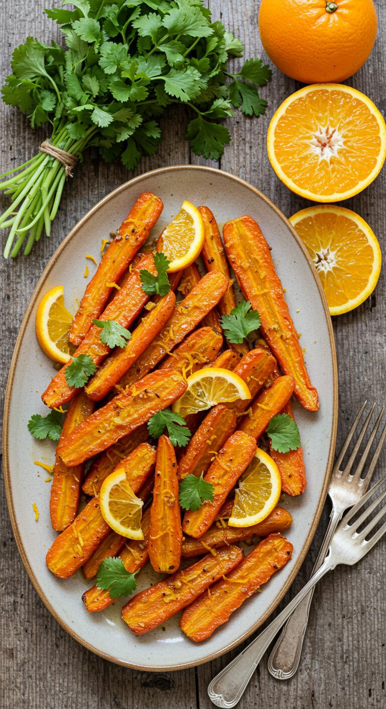 Bright, sunny carrots roasted with warm turmeric, zesty citrus, and fresh cilantro — vibrant and irresistible.