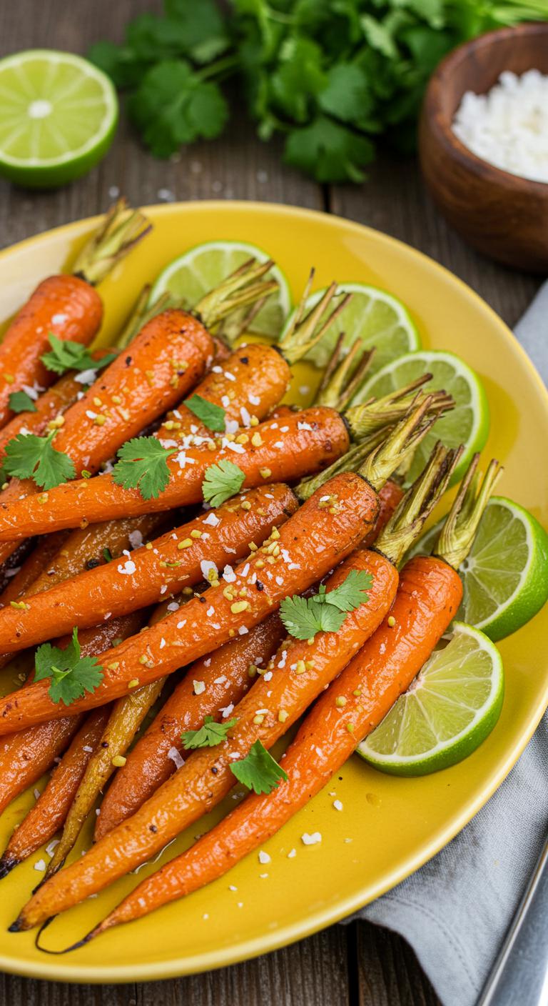 - Remove the carrots from the oven and drizzle with honey or maple syrup, lime juice, and lime zest; toss gently to combine.