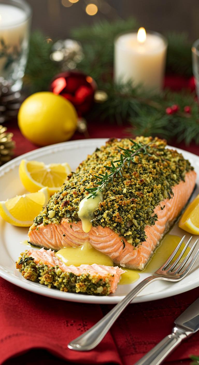 Bright, zesty herb-crusted salmon with silky lemon butter—perfect for a festive centerpiece.