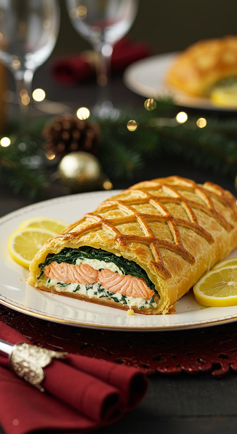 A show-stopping Salmon Wellington wrapped around flaky salmon, creamy goat cheese, and tender spinach — elegant enough for the holidays, easy enough for any night.