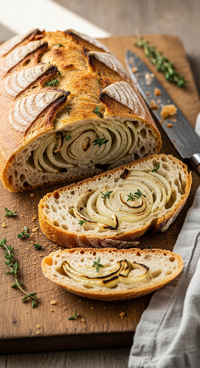 1. Savory Sourdough Bread with Caramelized Onions and Thyme