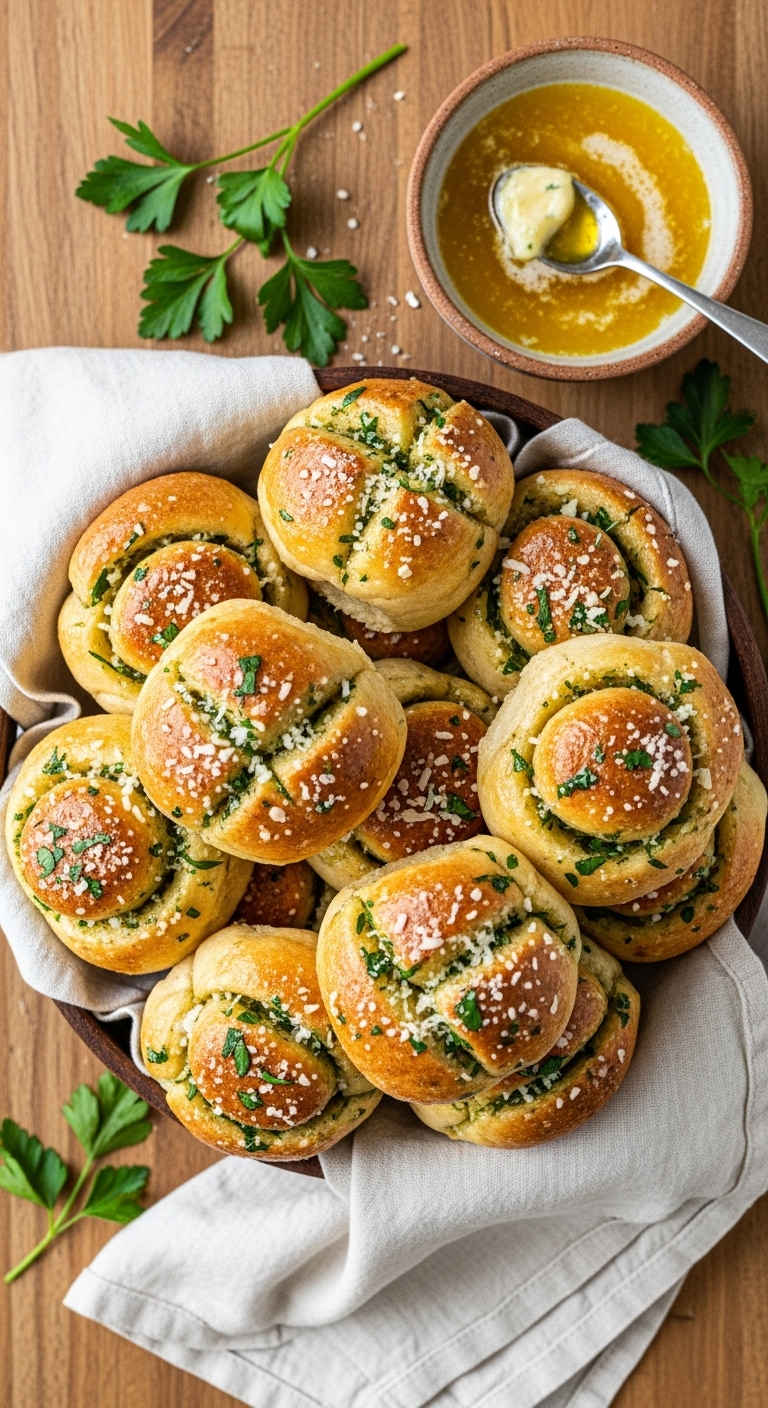 Serve in a basket with extra garlic butter for dipping. Pair with Caesar salad or tomato soup. Store in an airtight container 2 days or freeze for up to 1 month. Rewarm in the oven for 8–10 minutes. Make-ahead tip: shape rolls, refrigerate overnight, then bring to room temp and bake.