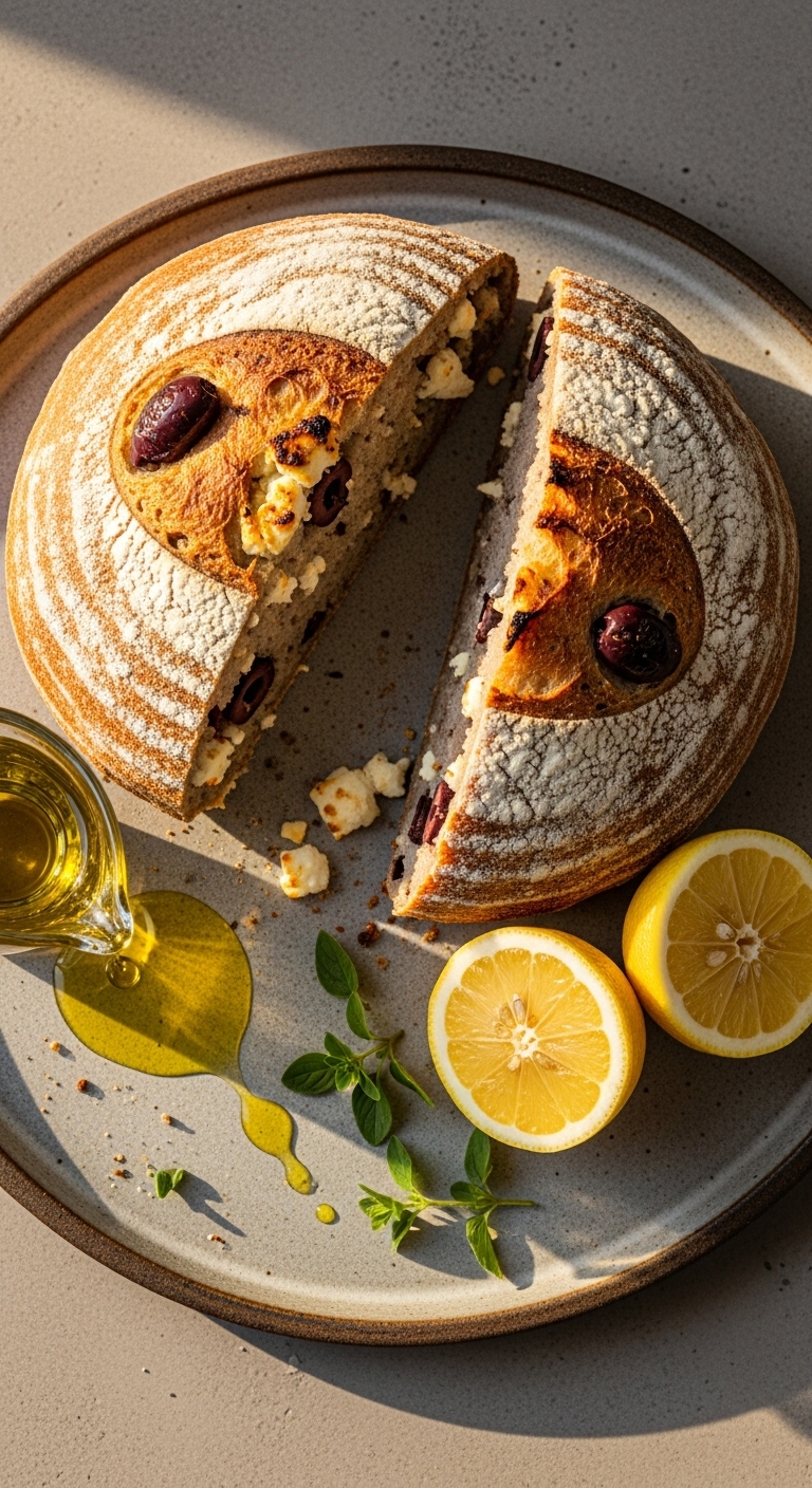 9. Mediterranean Sourdough Boule with Feta and Olives