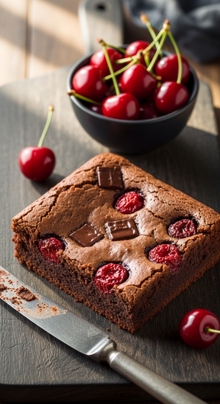 Bourbon-soaked cherries give these brownies grown-up flair. Sourdough discard enhances complexity and balances sweetness. Expect rich chocolate with boozy cherry bursts and a satin ganache. These are great for dinner guests or celebrations. You’ll detect warm bourbon notes and tender, juicy cherries.