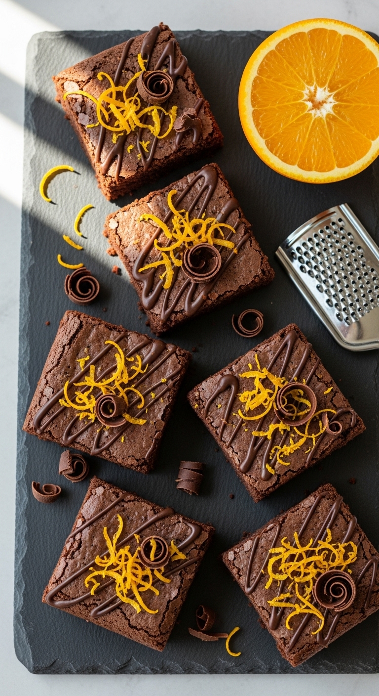 Garnish with candied orange peel and dark chocolate shavings. Pair with Earl Grey tea or orange-flavored liqueur. Store at room temperature in an airtight container for 3 days. For gifting, wrap cooled brownies individually.