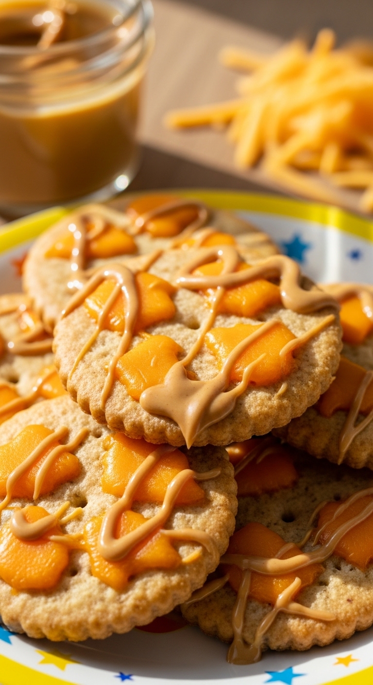 This playful combo blends creamy peanut butter and sharp cheddar for a sweet-savory treat. Texture is crisp with slight chew from peanut butter. Kids often find the flavor fun and comforting.