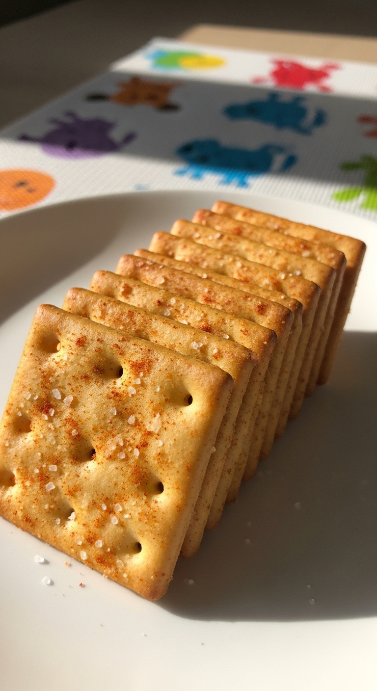 These taste like mini pizzas in cracker form—cheesy, herby, and just a touch saucy. The texture is crisp with a melty cheese top. They’re ideal for pizza-loving kids and party trays.
