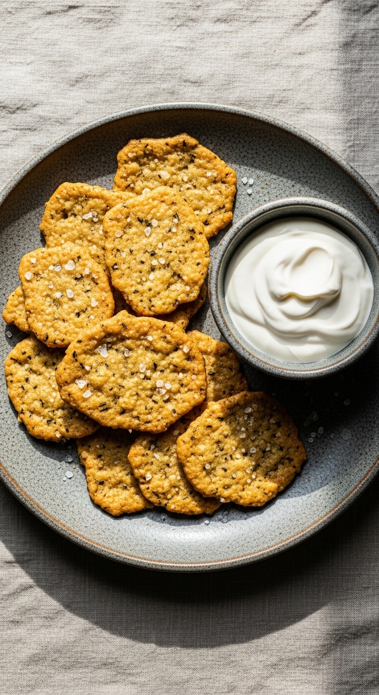 Serve with sliced pear and mild cheddar. Garnish with extra sesame seeds or a light drizzle of olive oil. Store airtight 4–5 days; re-crisp in a warm oven.