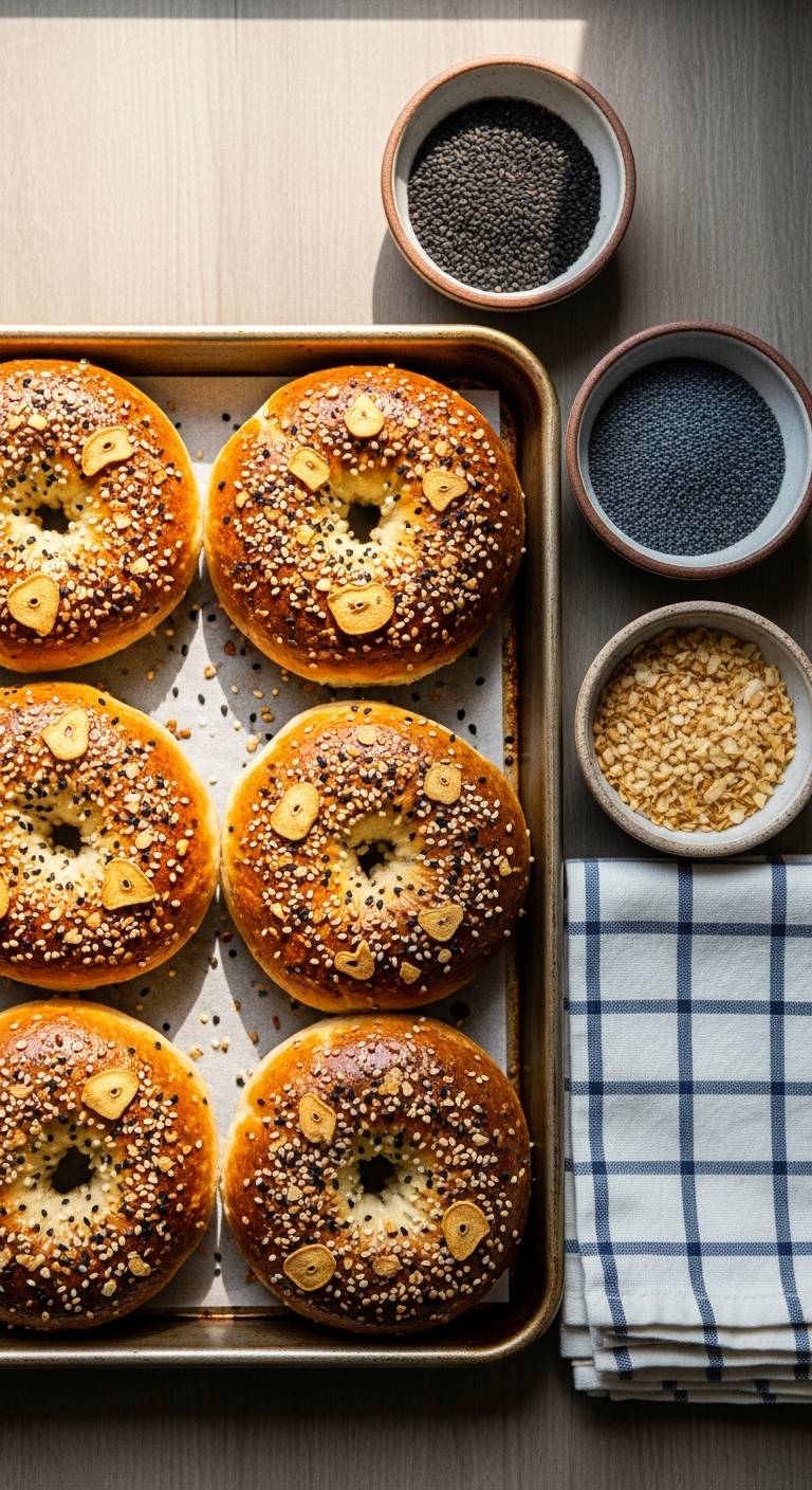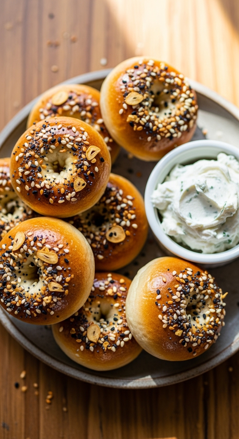 Serve halved and toasted, slathered with cream cheese or butter. Garnish with smoked salmon, thin red onion, capers, and dill for a classic combo. Store in an airtight container up to 2 days, or freeze fully cooled bagels for up to 3 months. To reheat, slice and toast from frozen. These bagels shine at brunch or for portable lunches.