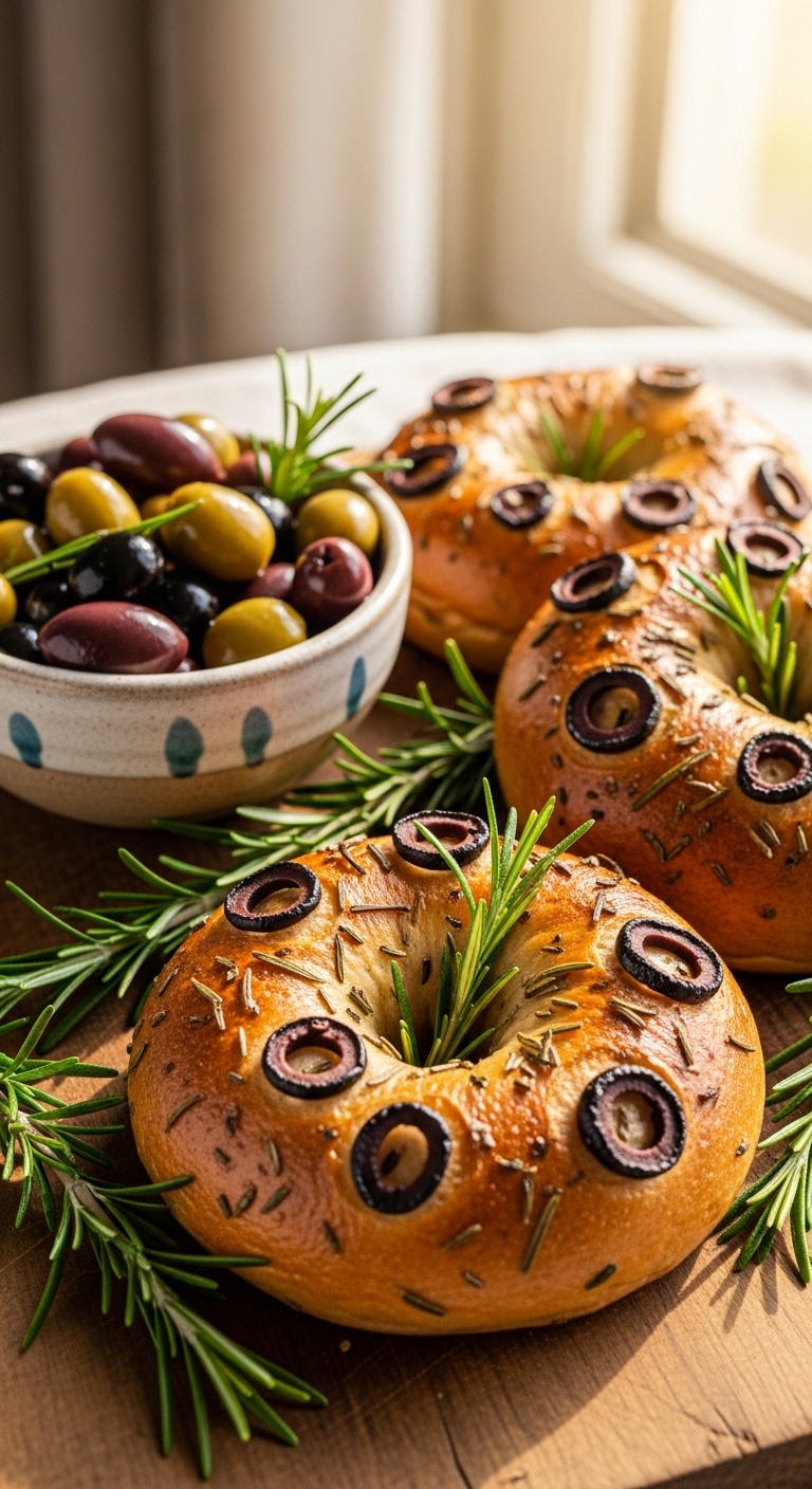 13. Olive & Rosemary Sourdough Bagels (Mediterranean Style)