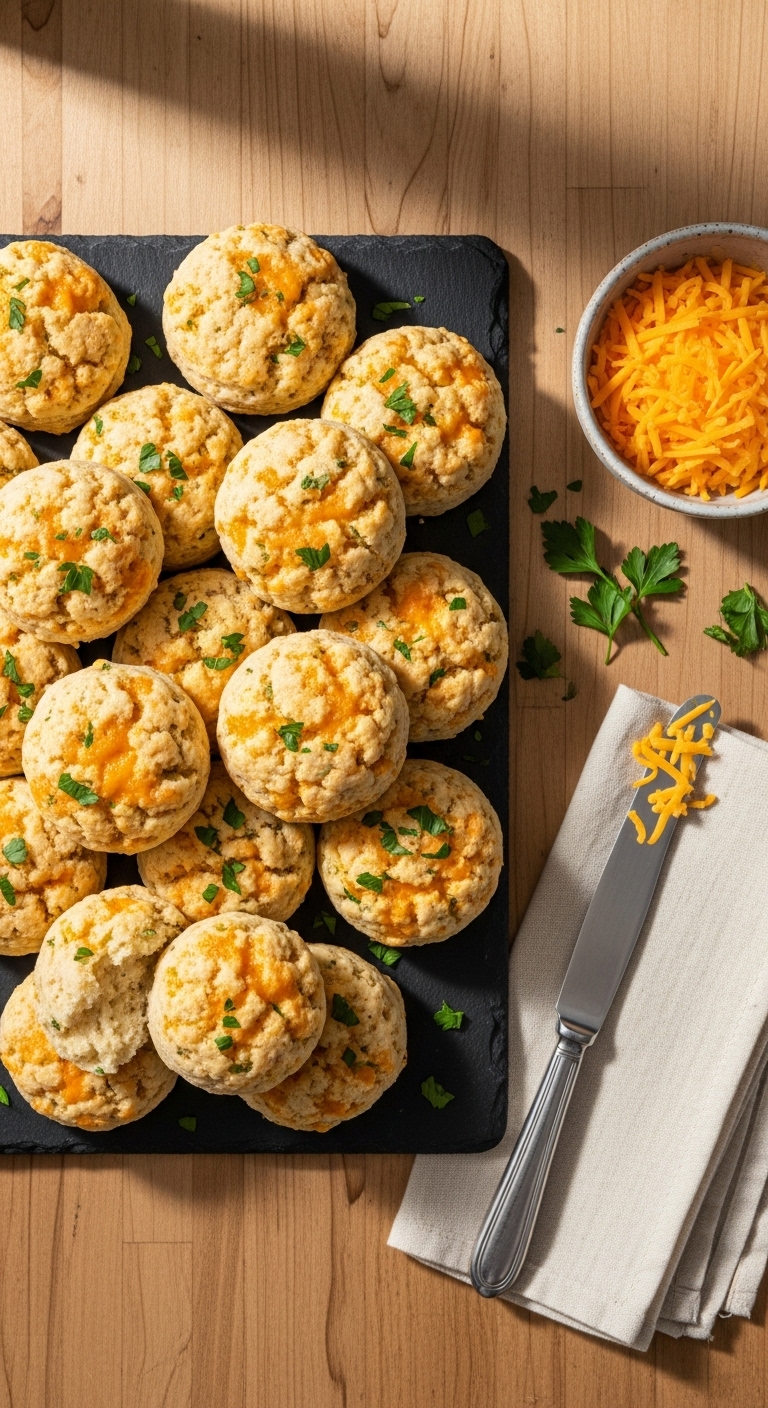 These biscuits are cheesy and herb-forward with bright green flecks. Sharp cheddar melts into layers for savory richness. They’re ideal for brunch, dinner sides, or soups. You’ll love the crisp tops and moist, tender centers. Expect a cheddar aroma and a buttery, herb-scented bite.