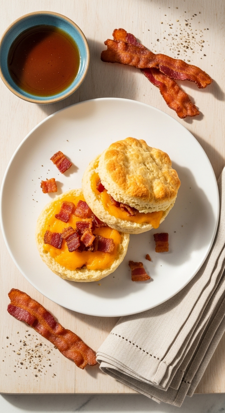 Serve hot with a smear of maple butter or jam. Garnish with chives or cracked black pepper. Pair with eggs, roasted tomatoes, or a crisp salad. Store in airtight container for 24 hours, refrigerate up to 3 days. Freeze baked biscuits individually for 1 month; reheat at 350°F.