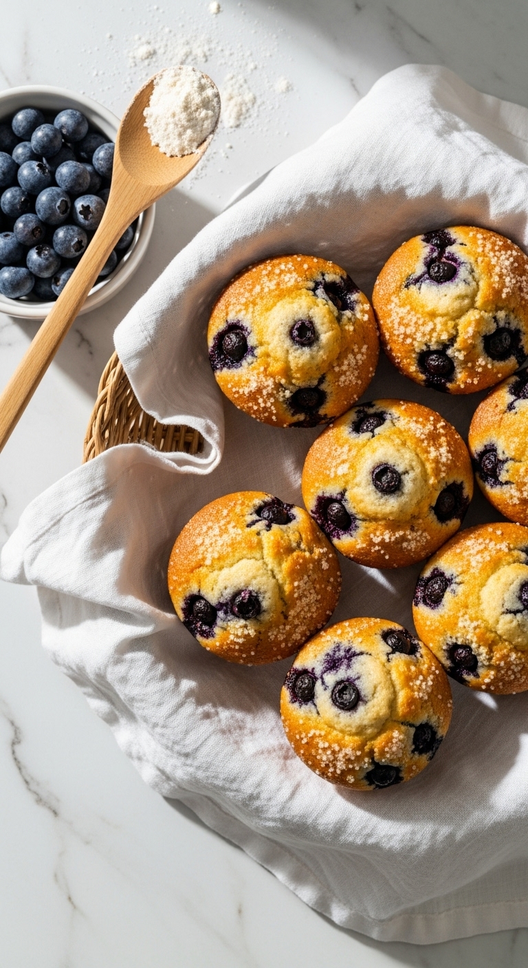 Serve warm with butter or almond butter. Pair with a citrus tea or cold-brew coffee. Garnish with extra blueberries or a lemon zest sprinkle for brightness. For make-ahead, freeze cooled muffins in a single layer then bag them; thaw or reheat in the microwave. These muffins are great for lunchboxes or weekend brunch spreads.