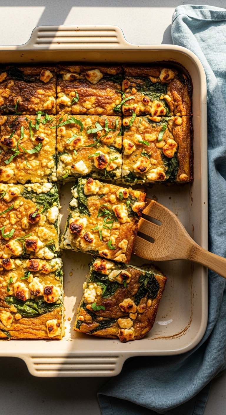 Cut into squares and garnish with fresh parsley or extra feta. Serve with a green salad or roasted potatoes. Refrigerate leftovers up to 4 days, or freeze portions for up to 1 month. Reheat in a moderate oven to avoid rubbery eggs. This casserole is ideal for holiday breakfasts or meal prep.