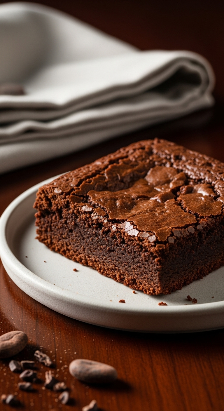 Serve squares on a simple white plate with a dusting of cocoa. Top with flaky sea salt or powdered sugar. Pair with cold milk or espresso. Store airtight at room temperature up to 3 days, or refrigerate for a week. Make ahead and freeze slices for up to 3 months.