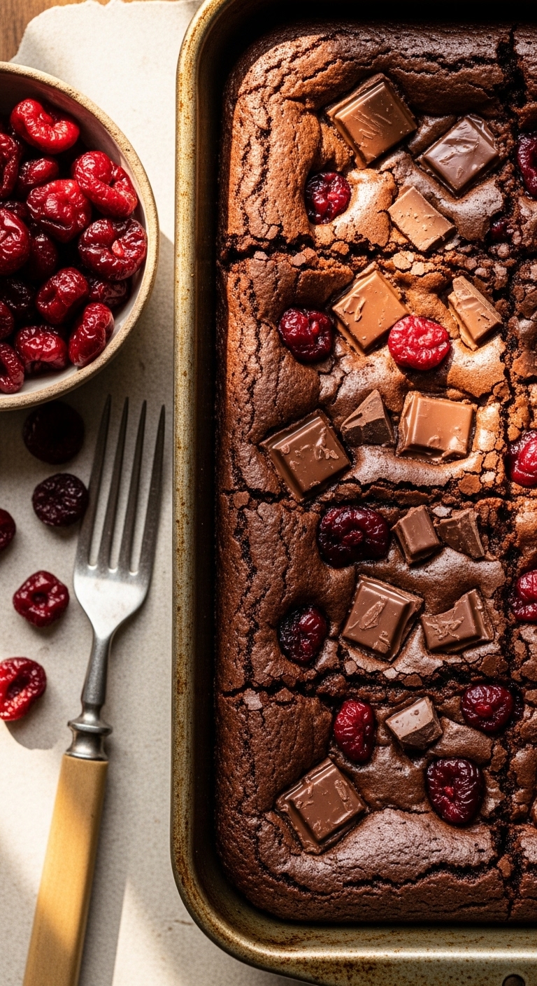Dried cherries add a tart chew to rich fudgy brownies. The sourdough discard gives the crumb a soft chew and depth. Texture is dense with sticky fruit pockets and melty chocolate. Great for fruit-and-chocolate fans and picnic boxes. Expect sweet-tart bites and a chewy finish.