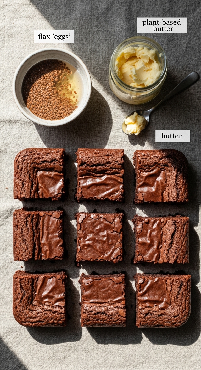 These vegan brownies use sourdough discard plus flax “eggs” for structure. Coconut oil and dark vegan chocolate create a fudgy, rich bite. Texture is dense and chewy, with a shiny top. Perfect for plant-based diets and chocolate lovers. Expect deep chocolate flavor and a soft, moist crumb.