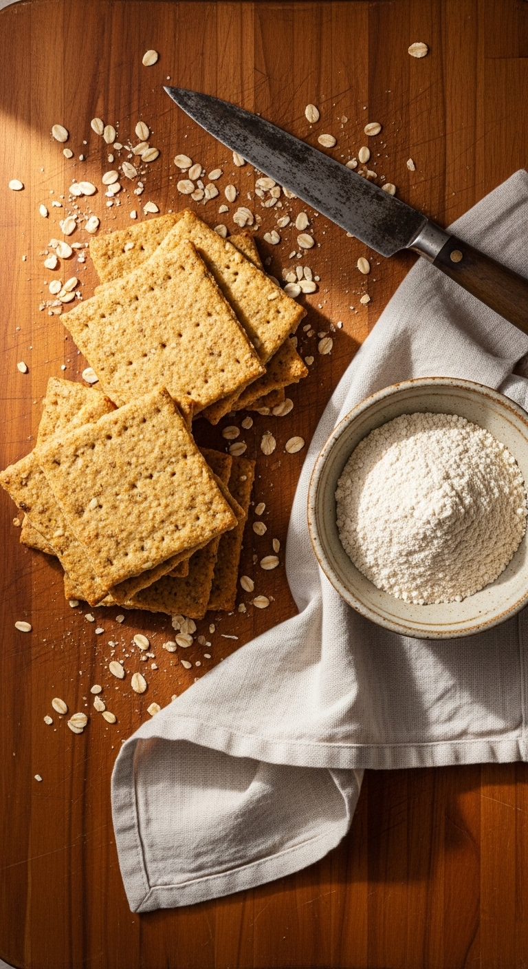 Serve on a rustic wooden board stacked neatly. Garnish with extra cheddar shavings or a tiny thyme sprig. Pair with tomato soup, pickles, or a crisp pale ale. Store in an airtight container at room temperature for up to 5 days. Make ahead and freeze baked crackers up to 2 months; re-crisp in a 350°F (175°C) oven for 3–4 minutes.