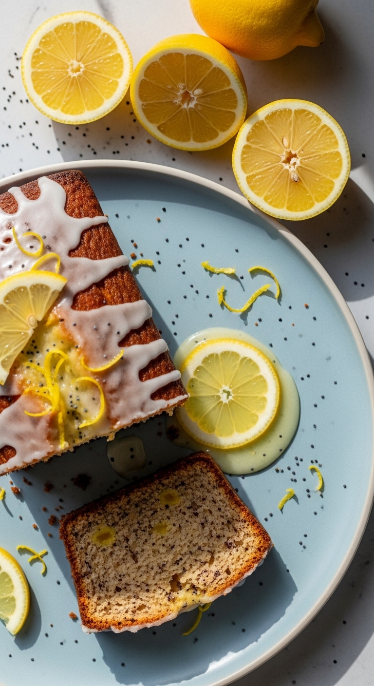 Slice and plate with thin lemon slices and a few extra poppy seeds. Pair with Earl Grey tea or sparkling water with lemon. Store wrapped in foil for 2–3 days at room temp. To make ahead, freeze unglazed loaf; thaw and warm slices in a low oven.