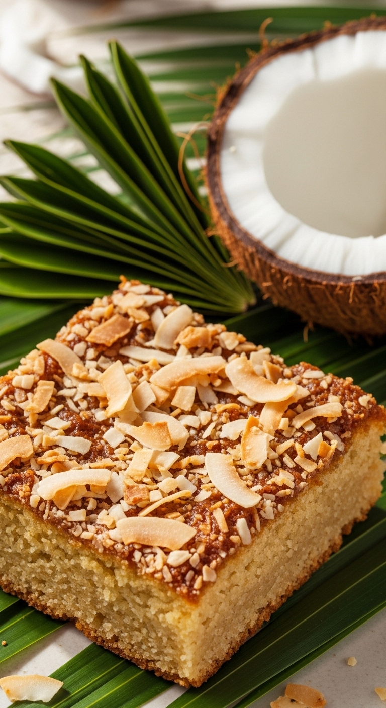 Top slices with extra toasted coconut and a drizzle of sweetened condensed milk for richness. Pair with cold brew coffee or a coconut latte. Store covered for 2–3 days at room temp. Freeze individual slices for easy brunch prep.