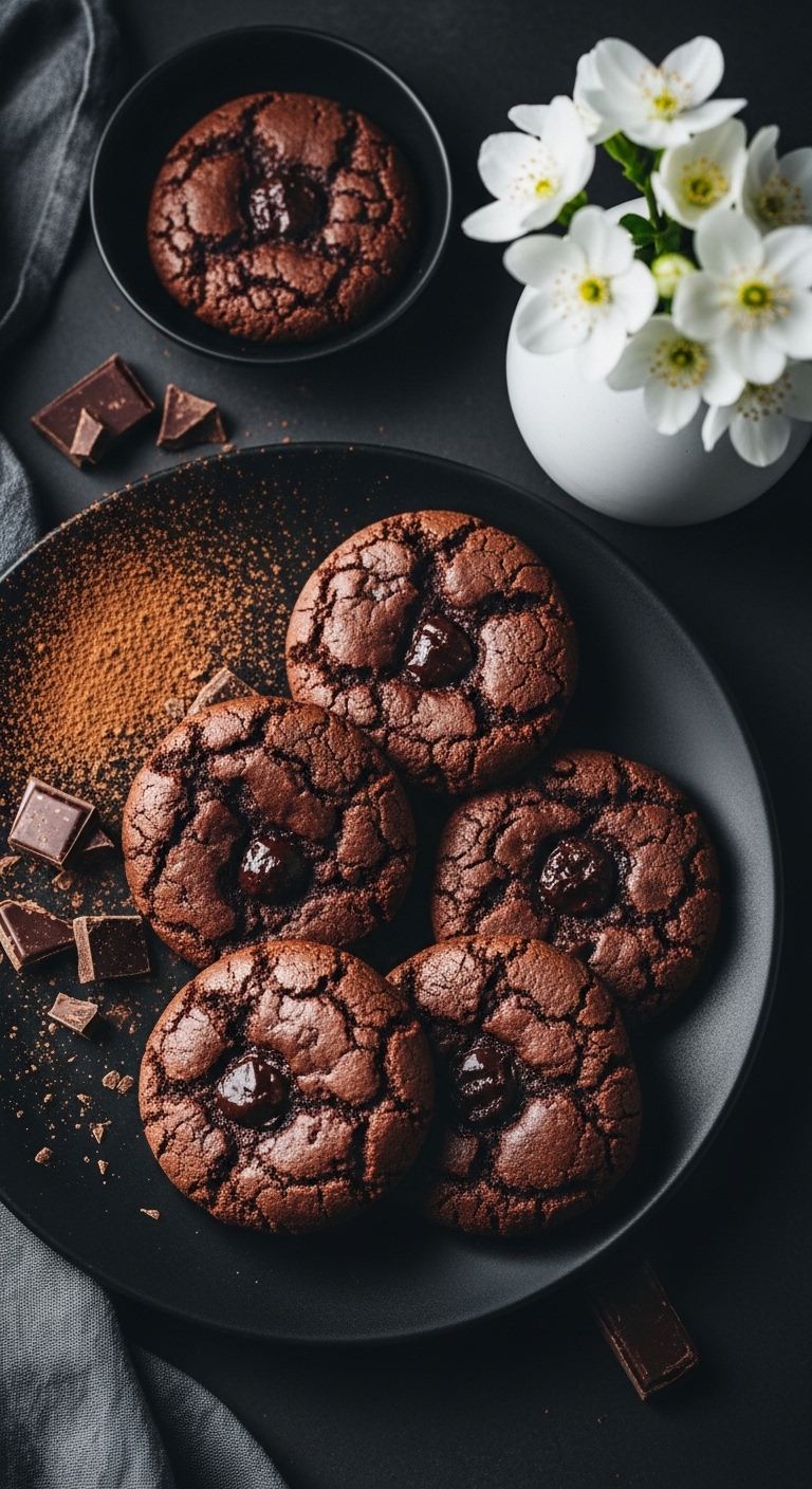 Dust with a pinch of powdered sugar for parties. Pair with cold milk or hot cocoa. Keep in an airtight container at room temperature up to 4 days. For intense chocolate mornings, warm a cookie slightly before serving.