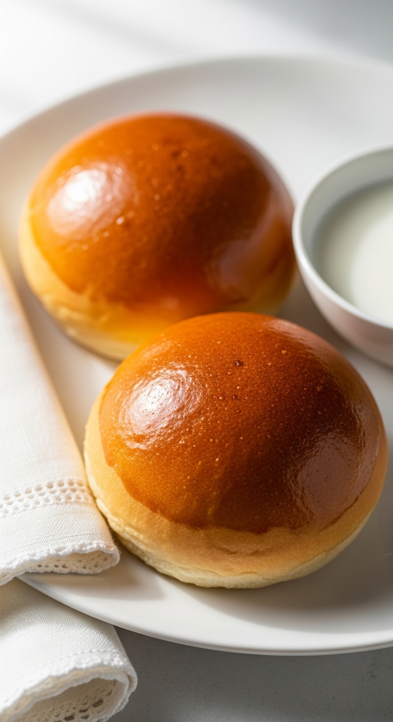 Serve as slider buns, with tea sandwiches, or buttered. Garnish with sesame seeds if desired. Pair with light salads or soft cheeses. Store in airtight container up to 2 days to retain softness. Reheat in microwave for 8–10 seconds or oven for 5 minutes. Dough can be proofed in fridge overnight for convenience.