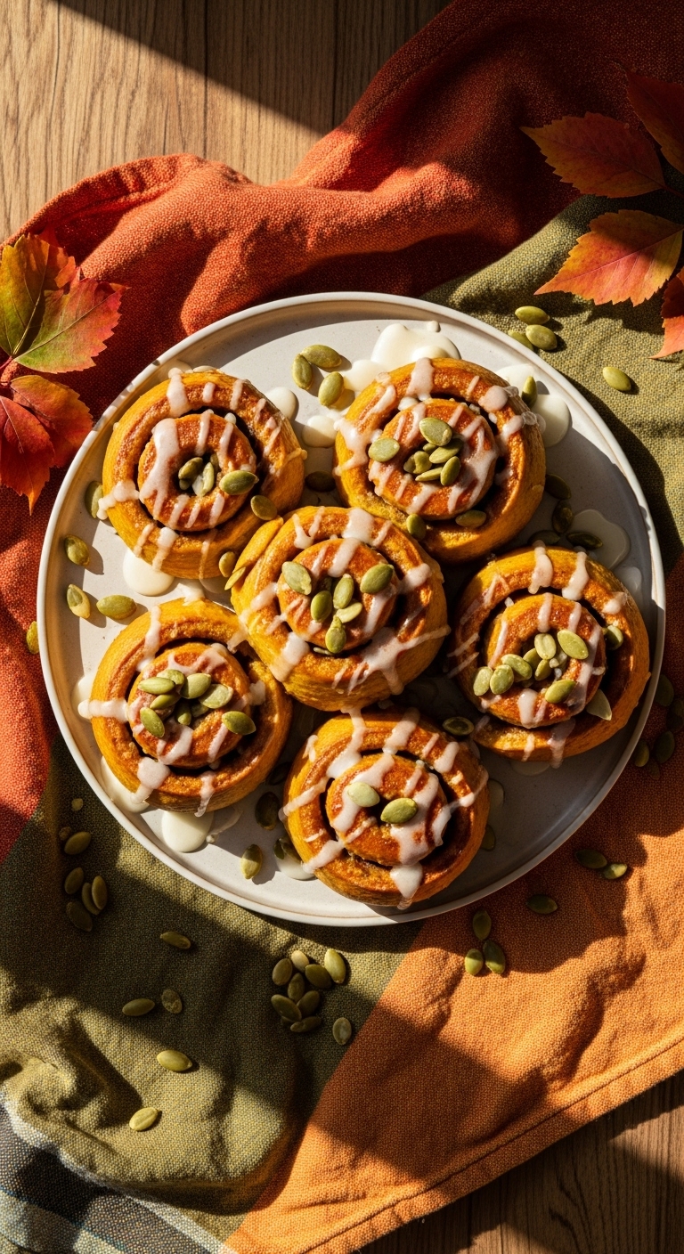 Serve warm with spiced butter or maple butter. Garnish with pumpkin seeds or a light drizzle of glaze. Pair with turkey, cider, or coffee. Store in airtight container up to 3 days. Reheat at 325°F for 8 minutes. Dough can be chilled overnight for an easy morning bake.