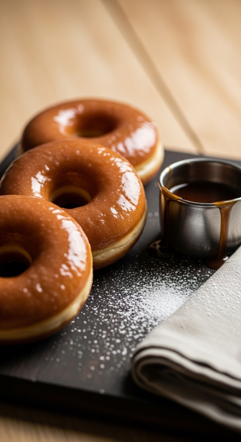 - Dip warm donuts and allow glaze to set 5–10 minutes.
