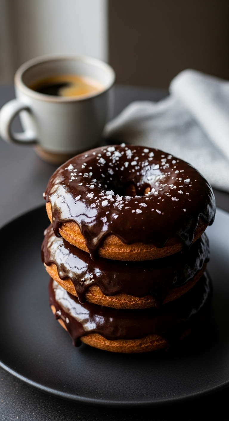 3. Chocolate-Glazed Sourdough Discard Donuts with Sea Salt
