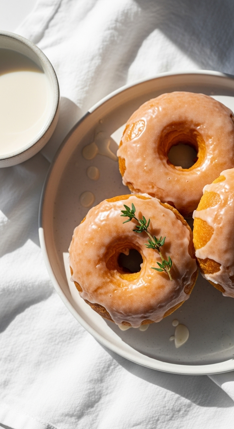 Plate with a drizzle of extra maple and a sprinkle of flaky sea salt for contrast. Garnish with toasted pecans or chopped walnuts for crunch. Serve with black coffee or chai. Store glazed donuts in an airtight container at room temperature for 1 day, refrigerate up to 3 days. You can bake these on a greased donut pan at 375°F for 10–12 minutes for a lighter version.