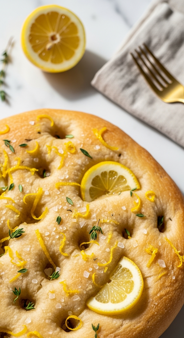 This lemon-thyme focaccia is bright and fragrant. Zesty lemon cuts through savory olive oil for a lively bite. Thyme balances citrus with herbaceous depth. It’s ideal with seafood, salads, or as a standalone snack. Expect a soft crumb and a fresh, tangy aroma.