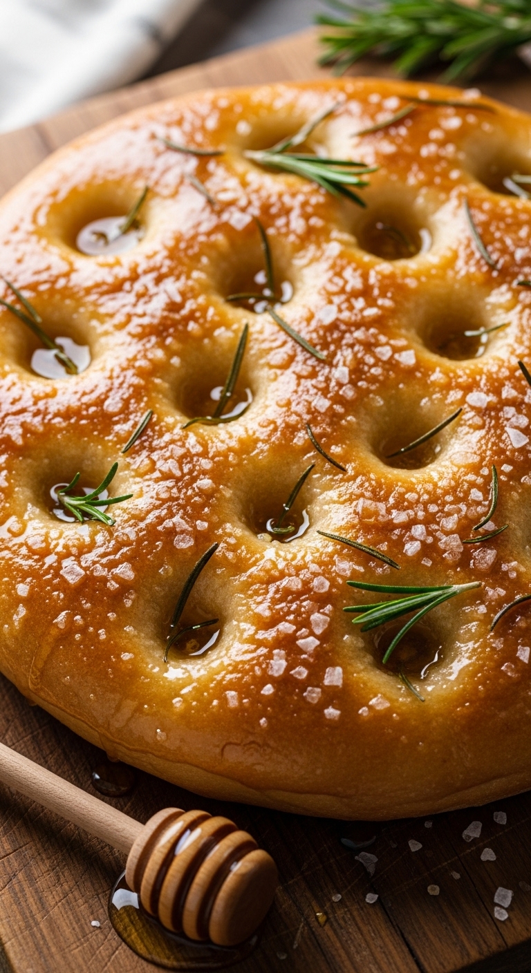 A sweet-savory twist, this focaccia uses a honey-olive oil glaze for a glossy finish. Rosemary adds earthiness and sea salt balances the sweetness. The sourdough discard keeps the crumb airy and delicate. This recipe shines with cheese boards and soft cheeses.