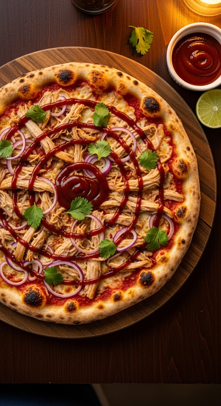 Serve on a large platter with lime wedges. Garnish with extra cilantro and a drizzle of BBQ sauce. Pair with a cold beer or iced tea. Store leftovers in the fridge 2–3 days; reheat in oven at 450°F. Shred and season chicken ahead for quick assembly.