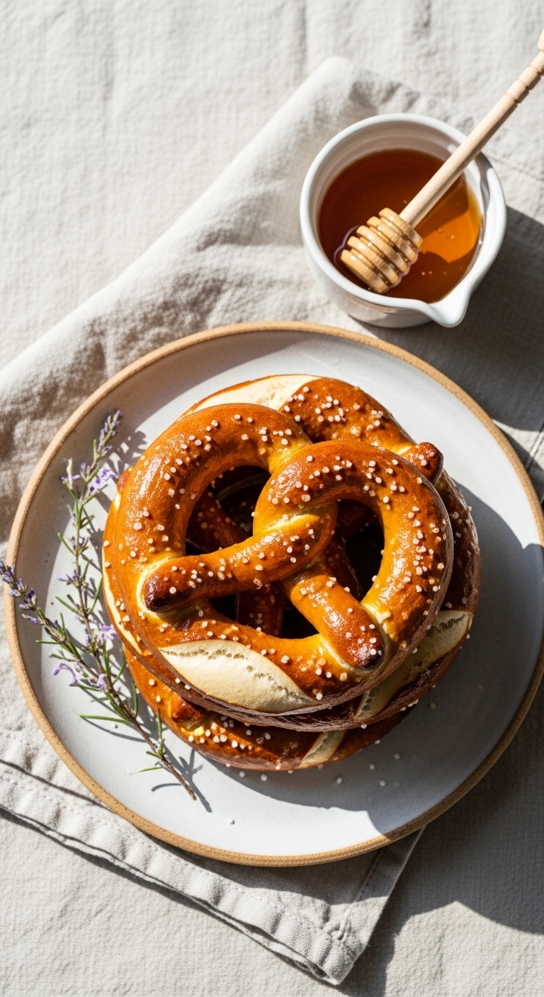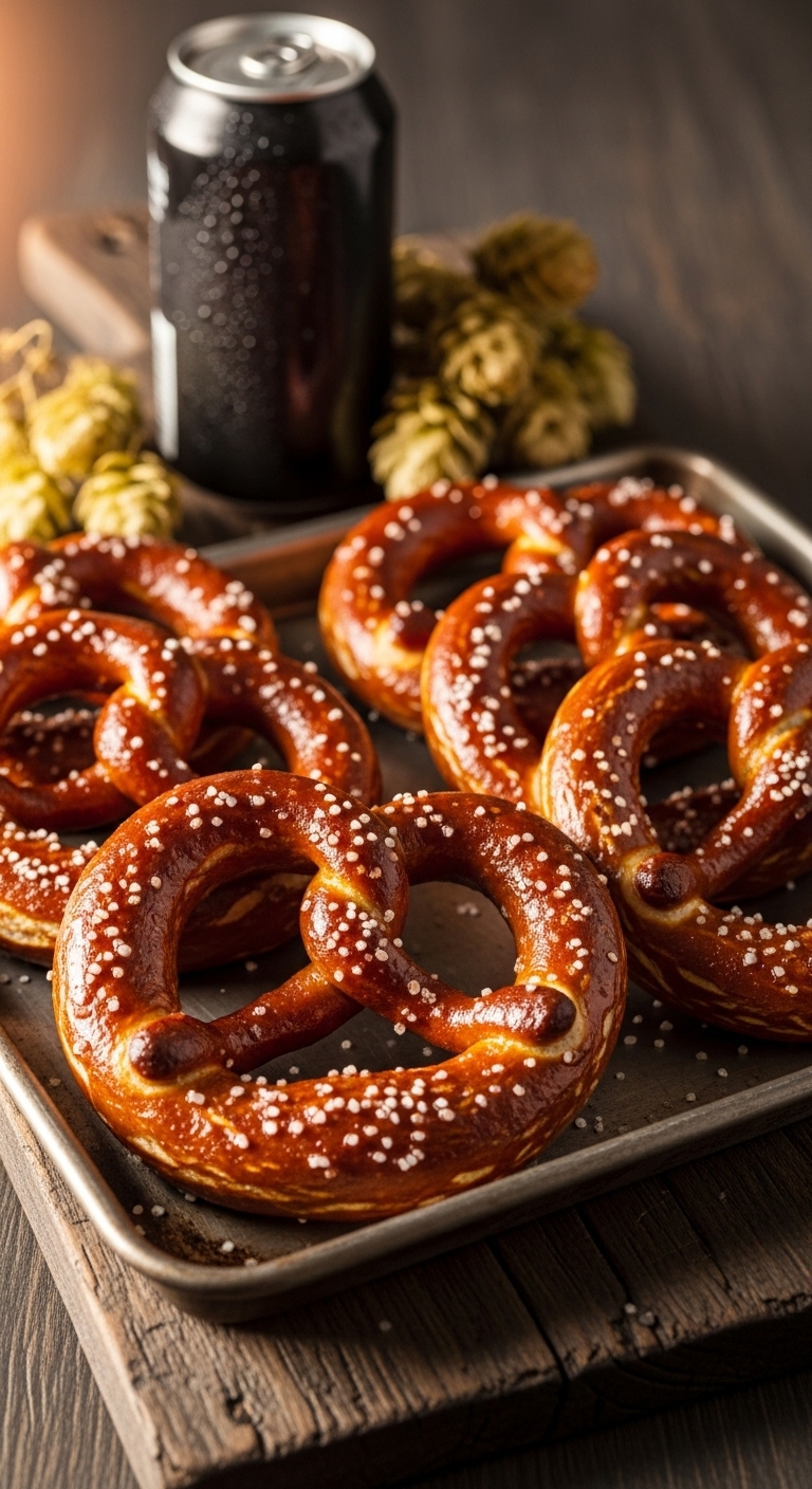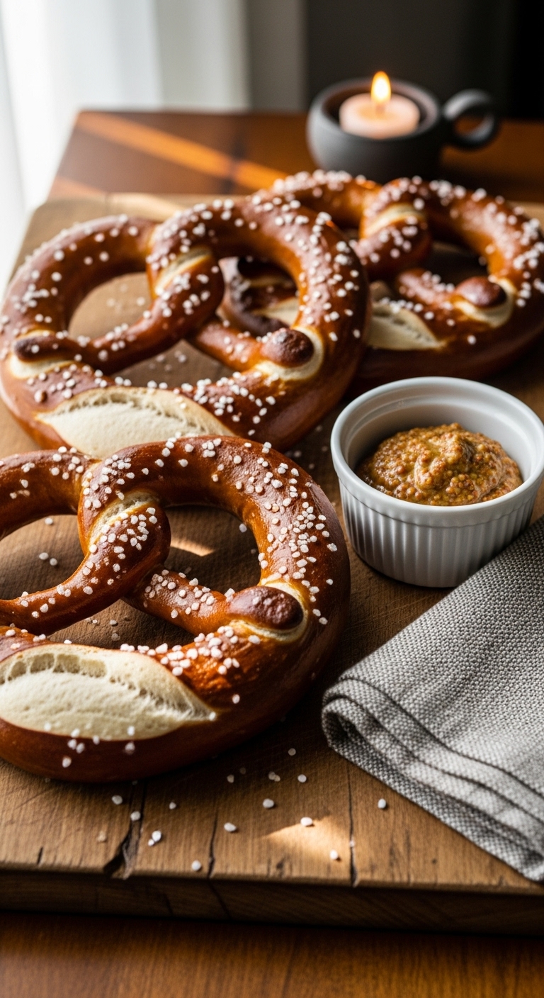 Serve on a wood board with classic yellow mustard and beer cheese. Garnish with extra coarse salt and a sprig of rosemary for contrast. These pair with lager, soda, or hot cocoa for sweet contrast. Store in an airtight container for up to 2 days. Reheat at 350°F for 5–7 minutes to restore chew. You can make dough a day ahead and refrigerate overnight for convenience.