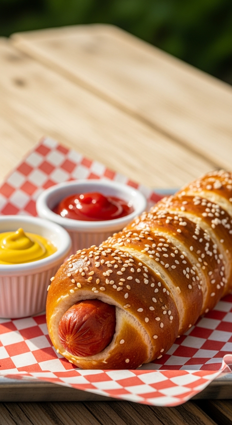 Serve with mustard, ketchup, and pickles on the side. Add shredded cheddar inside before wrapping for extra richness. Store in the fridge up to 2 days; reheat at 350°F for 6–8 minutes. Make dough earlier and assemble just before guests arrive for fresh baking.