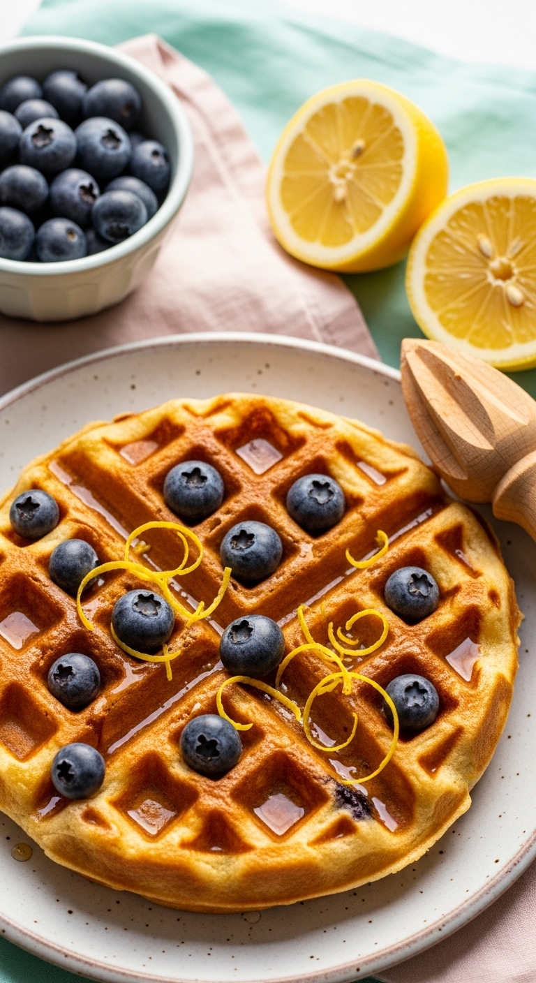 Bursting blueberries and citrus zest lift these waffles. The sourdough discard adds a subtle tang that pairs beautifully with lemon. Crisp edges contrast with juicy fruit pockets.