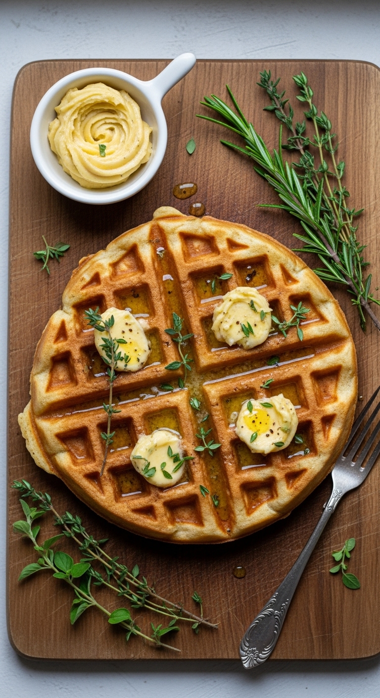 8. Herb & Garlic Crispy Sourdough Discard Waffles (Savory)