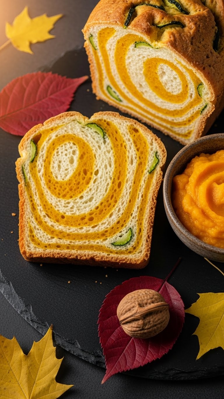 This fall-inspired loaf blends pumpkin puree with grated zucchini for ultra-moist texture. The sourdough discard adds a pleasant tang that balances warm spices. Expect cinnamon, ginger, and clove notes with a soft, tender crumb. Great for cool mornings or holiday brunches.