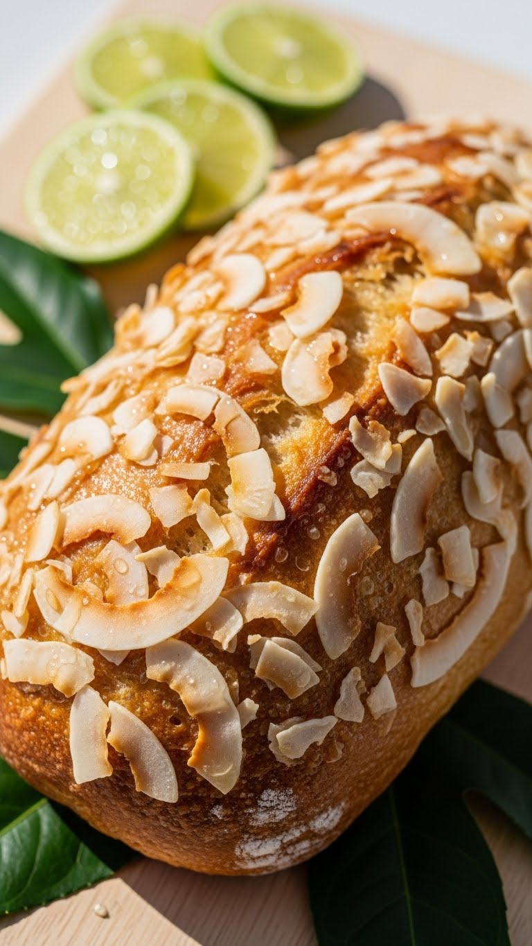 Serve with a dusting of extra lime zest and a sprinkle of shredded coconut. Add whipped coconut cream for an indulgent touch. Pair with iced tea or a coconut latte. Store wrapped at room temperature 2–3 days, refrigerate up to 5 days.