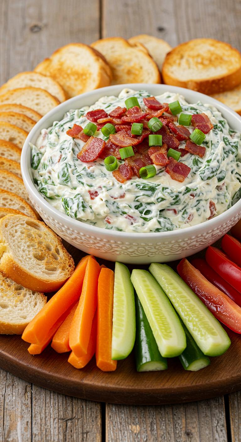 Savory, smoky bacon meets silky cream cheese in this crowd-pleasing spinach dip.