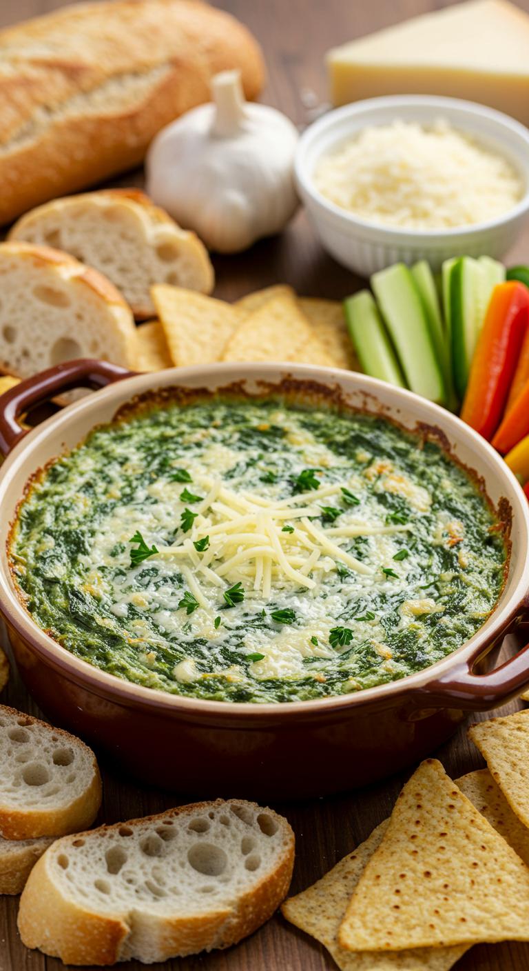 Roasted Garlic and Parmesan Spinach Dip — rich, garlicky, and irresistibly creamy.