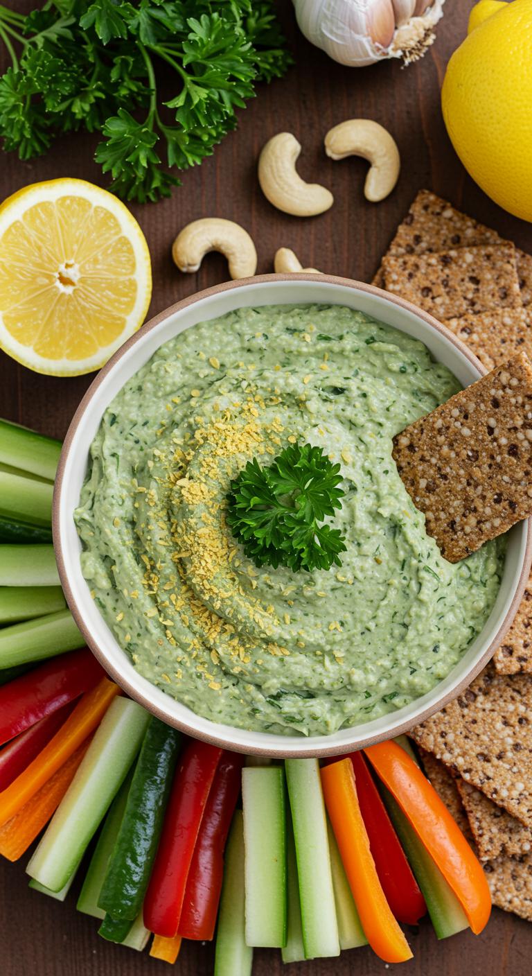 Enjoy scooping up this bright, creamy dip—perfect for parties or a healthy snack!