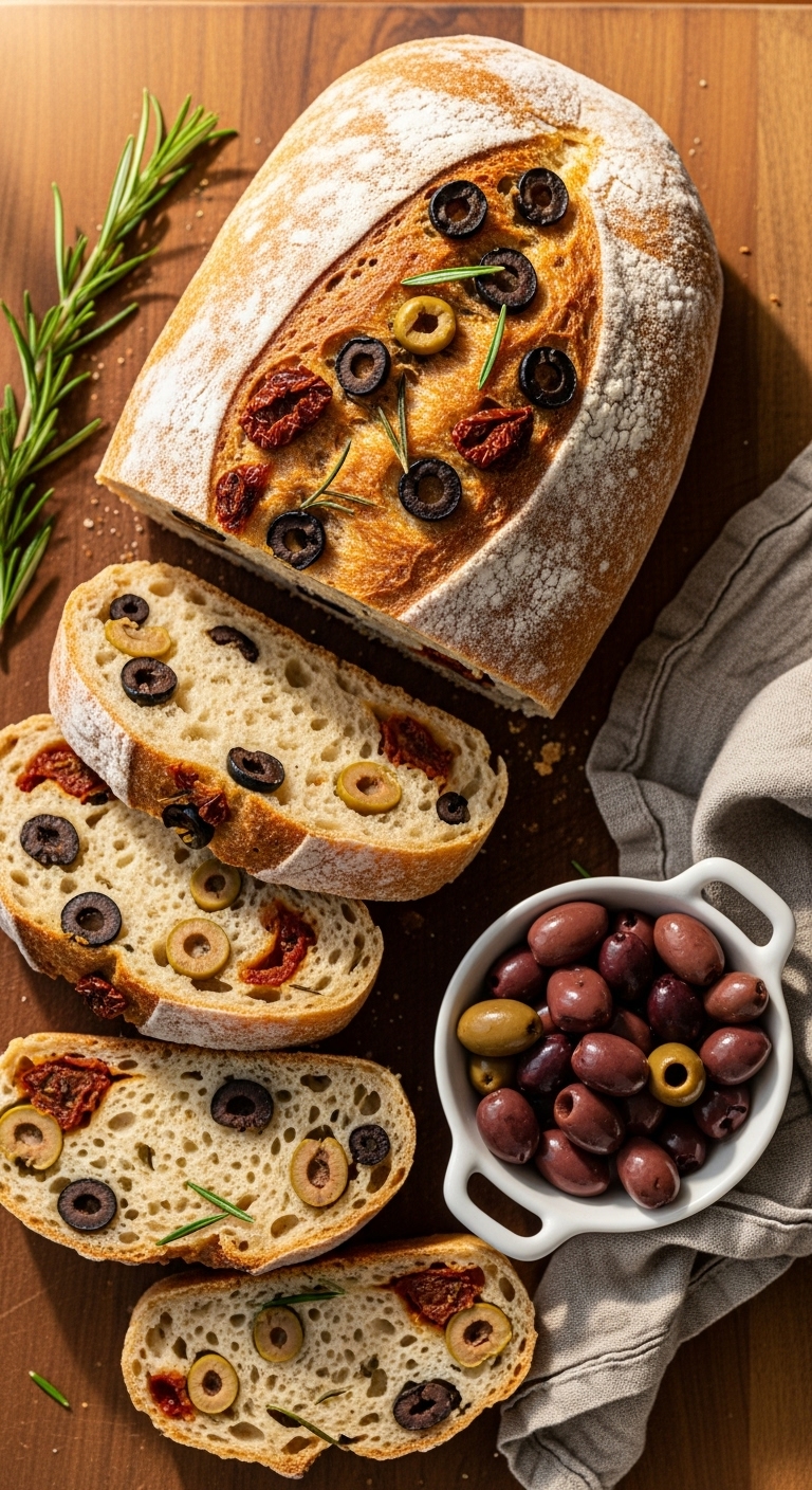 This loaf works great with antipasti or rustic sandwiches. Fans of Mediterranean flavors will savor every slice.