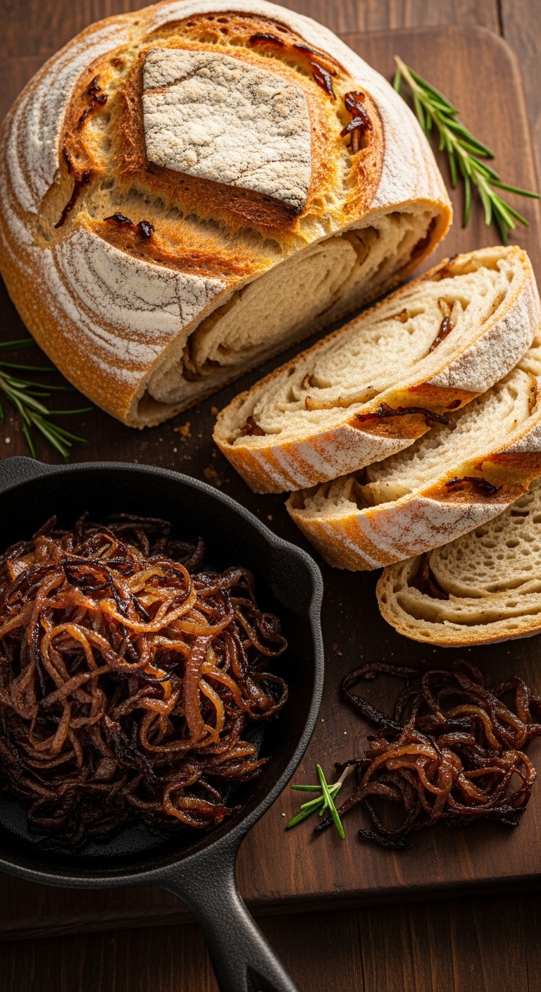 Sweet caramelized onions add depth to sun-dried tomato tang in this loaf. The sweetness balances the sourdough bite.