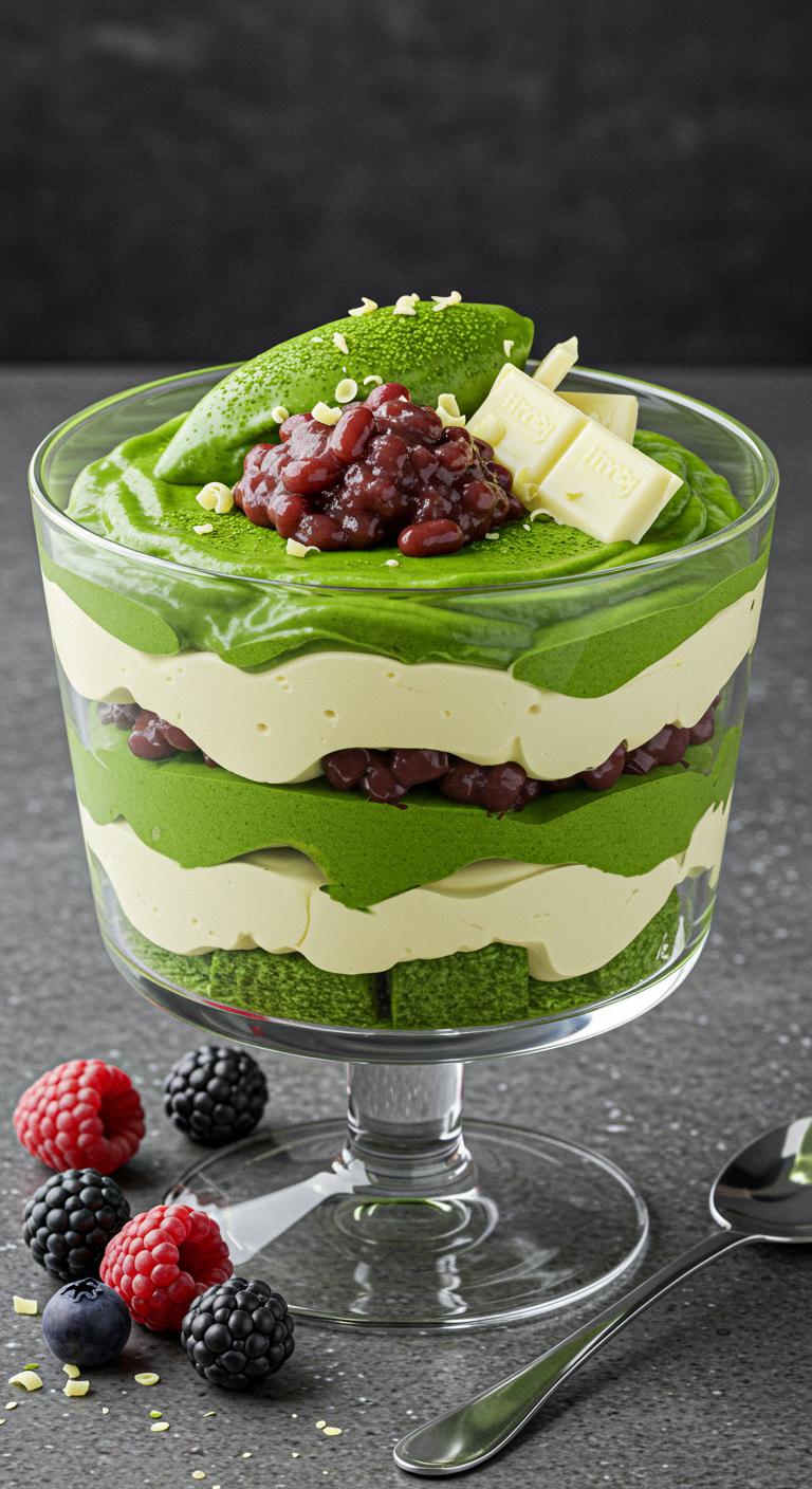 Enjoy each spoonful of this elegant, creamy matcha-white chocolate trifle!