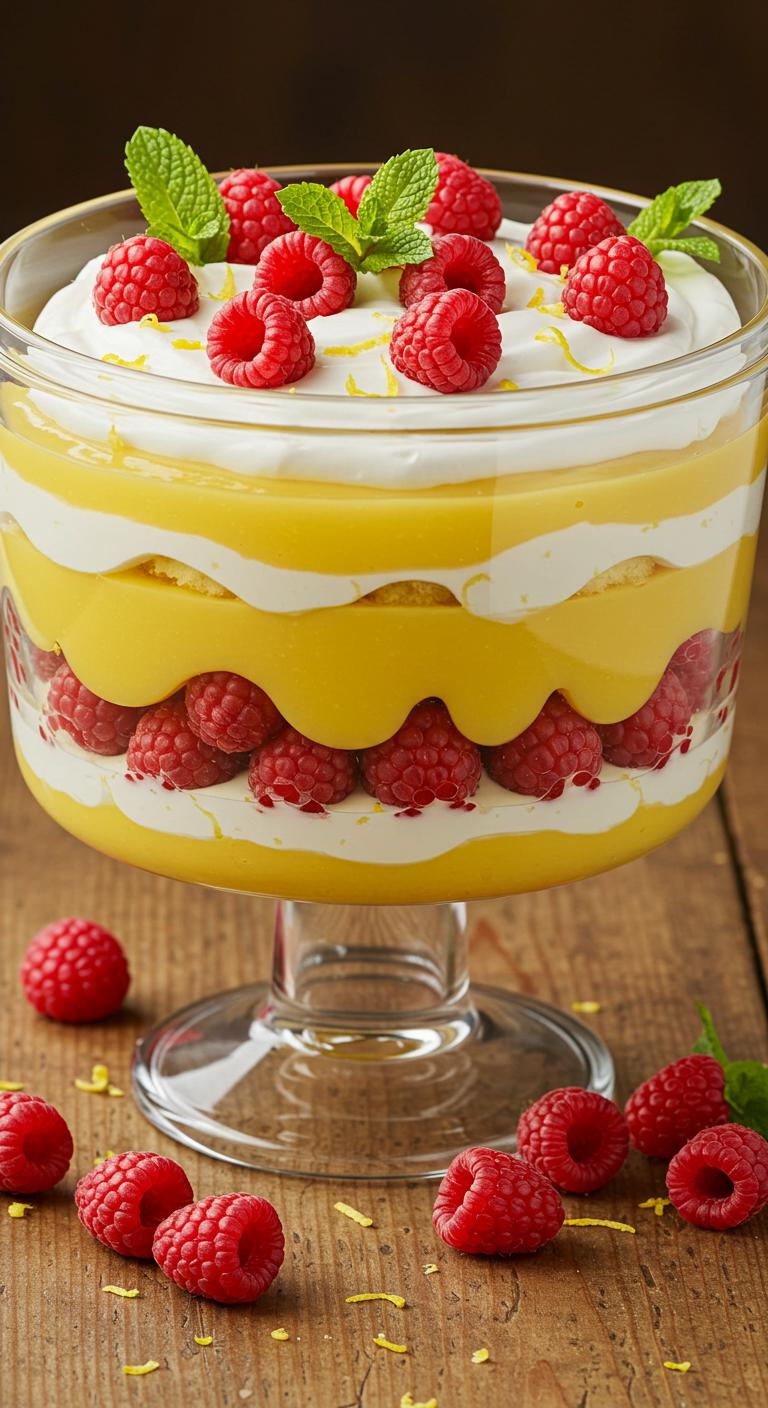 Bright, zesty layers of lemon curd, fluffy cream, and tart raspberries make this trifle a sunny showstopper.