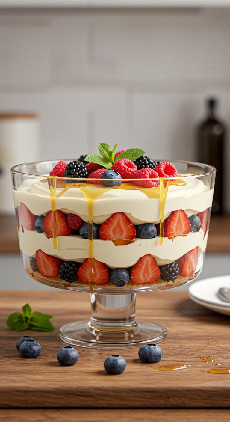 Bright, creamy layers of mascarpone, honey, and mixed berries make this trifle irresistibly fresh and elegant.