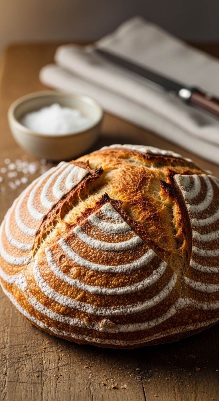 - Bake: Preheat oven to 460°F (238°C) with stone or Dutch oven. Bake covered 20 minutes, then uncovered at 430°F (220°C) for 25–30 minutes.